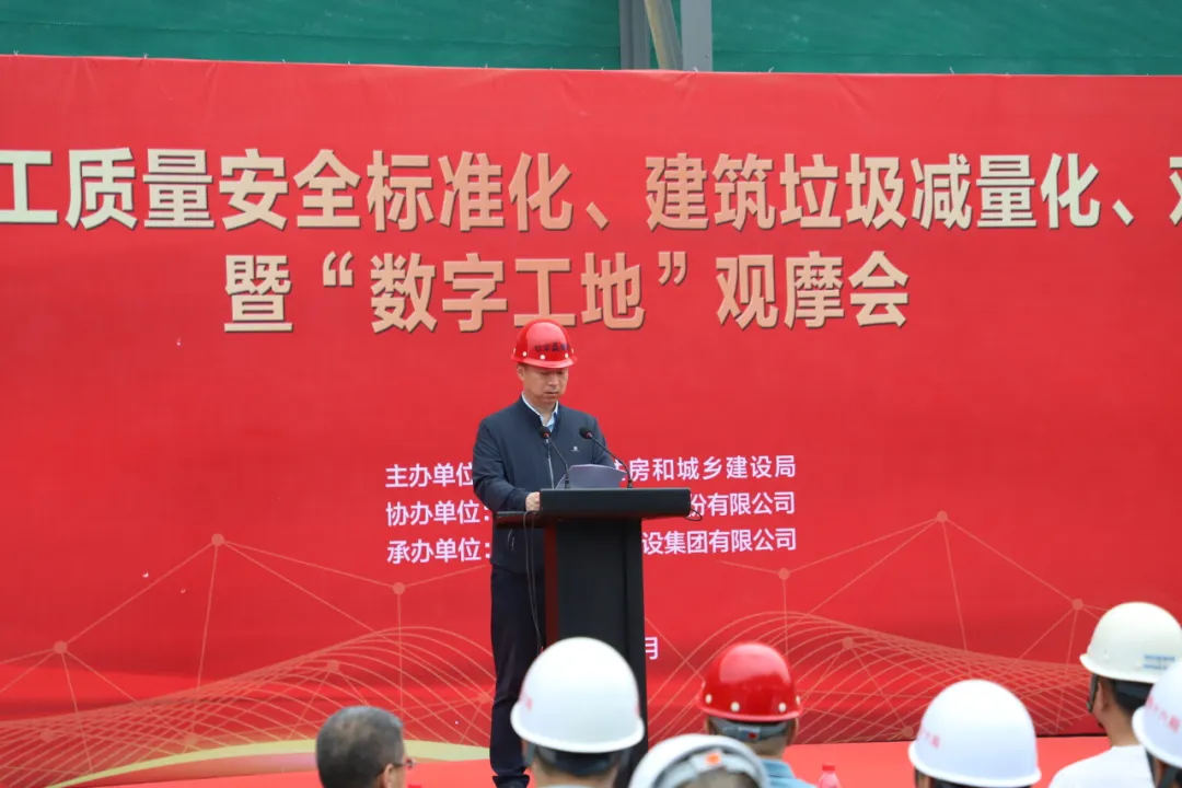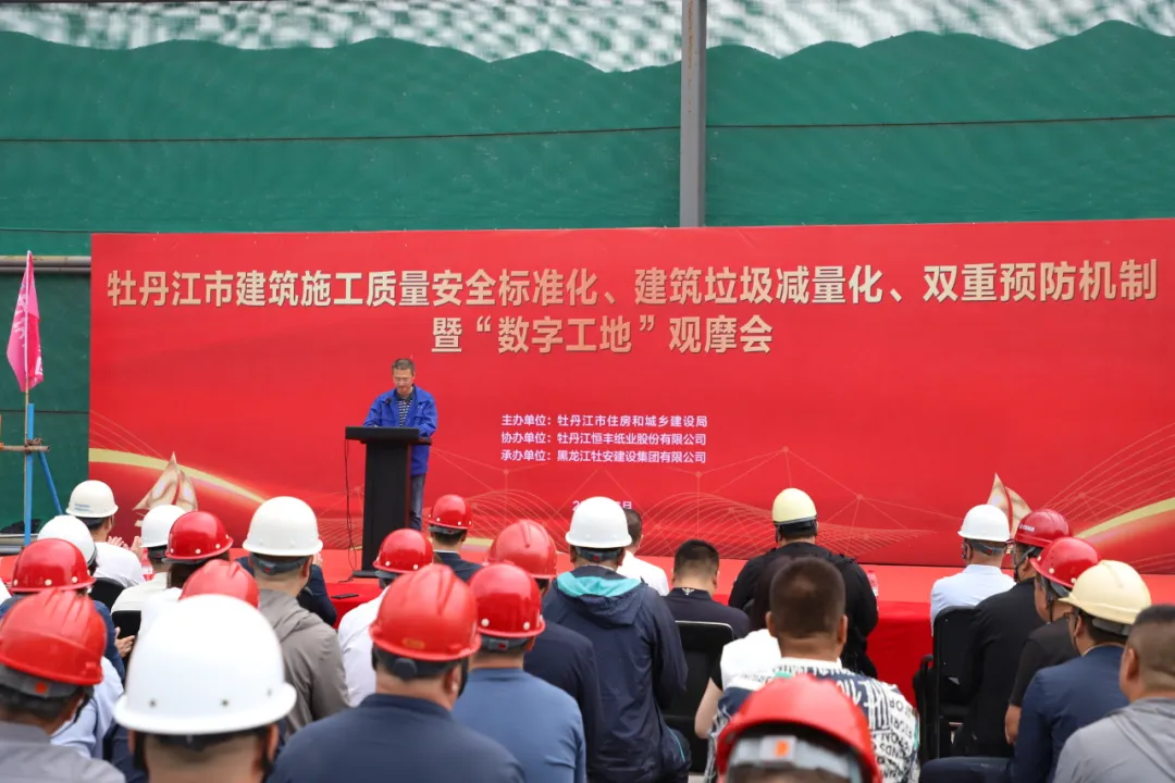 6月21日,由市住房和城鄉(xiāng)建設(shè)局主辦,黑龍江牡安建設(shè)集團承辦的“牡丹江市建筑施工質(zhì)量安全標準化、建筑垃圾減量化、雙重預(yù)防機制暨數(shù)字工地觀摩會”在牡安集團承建的恒豐紙業(yè)項目隆重舉行。市住建局副局長畢傳鵬、市工程質(zhì)量技術(shù)服務(wù)中心主任孫勇、黑龍江牡安建設(shè)集團董事長、總經(jīng)理張秋以及市住建局、各縣(市)、開發(fā)區(qū)住建局、質(zhì)量安全中心(站)的有關(guān)領(lǐng)導、市區(qū)在建項目的各位同仁參加了本次活動。